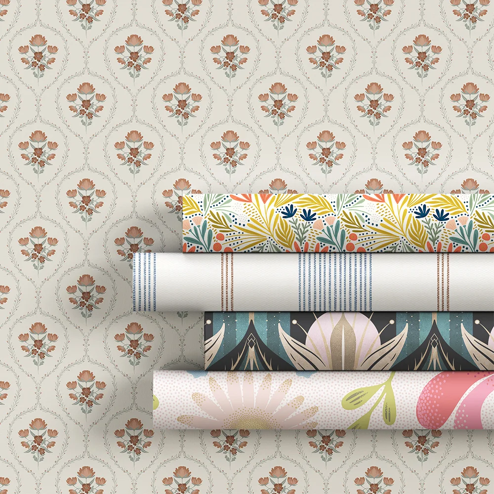 Peel and stick wallpaper is a revolutionary option for those wanting to update their home decor with ease. This self-adhesive wallpaper eliminates the need for paste, water, and professional installation, making it perfect for DIY projects. Simply peel the backing and stick the wallpaper to your wall for a mess-free, hassle-free application. This renter friendly wallpaper allows you to transform a room in just a few hours, without the need for special tools or extensive cleanup.One of the standout features of peel and stick wallpaper is its removability and repositionability. If you decide to change the design or need to adjust the placement, you can easily remove and reposition the wallpaper without causing damage to your walls. This flexibility is ideal for renters or anyone who enjoys frequently updating their decor. Spoonflower’s extensive selection of removable wallpaper designs ensures you’ll find the perfect fit for your style, whether you prefer bold patterns, delicate florals, or modern geometrics.Choose Spoonflower for your temporary wallpaper needs and enjoy the perfect blend of style and convenience. This removeable wallpaper option is quick to put up and take down and works perfectly is a great rental friendly wallpaper option. With our wide variety of designs, you can create a unique space that reflects your personality and enhances your home’s aesthetic.